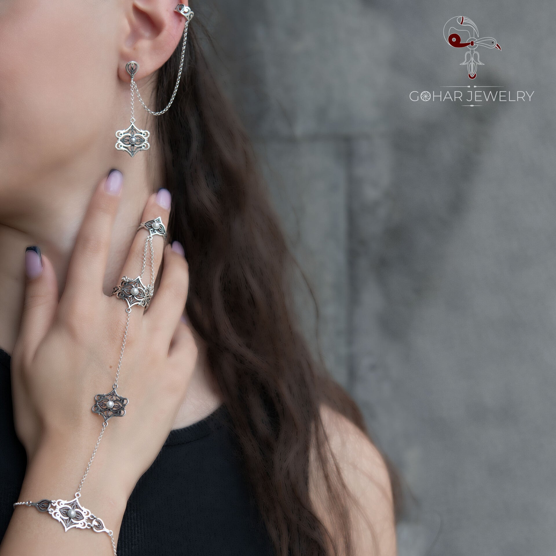 Die Ohrringe sind in Weiß und Schwarz mit einem Armbandring kombinierbar oder als Set erhältlich.